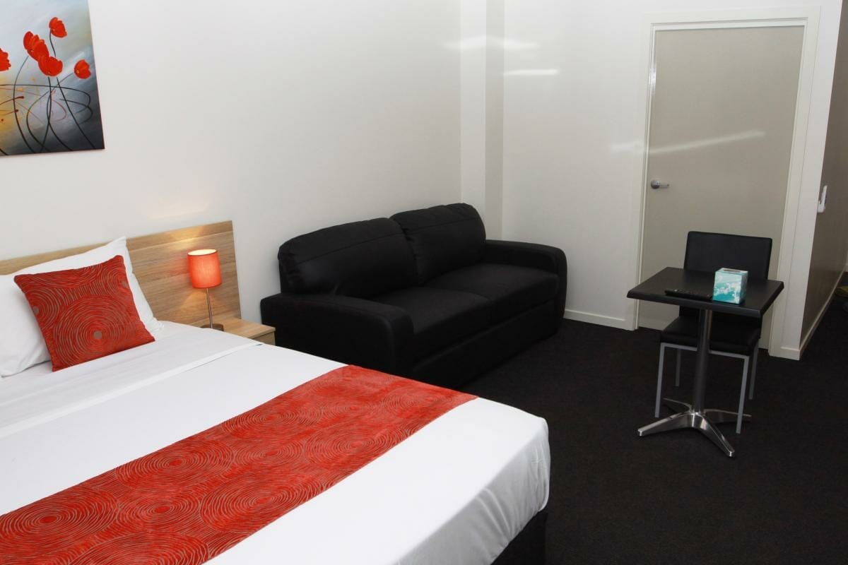 This 2 bedroom Family Studio sleeps 4-6 people. Bedding includes 1 Queen bed, 1 Double Sofabed and 2 King Single beds in a separate bedroom.